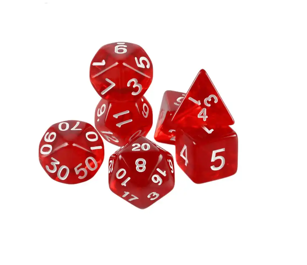 Vitrum Red – Przezroczysty Zestaw Kości RPG D4–D20